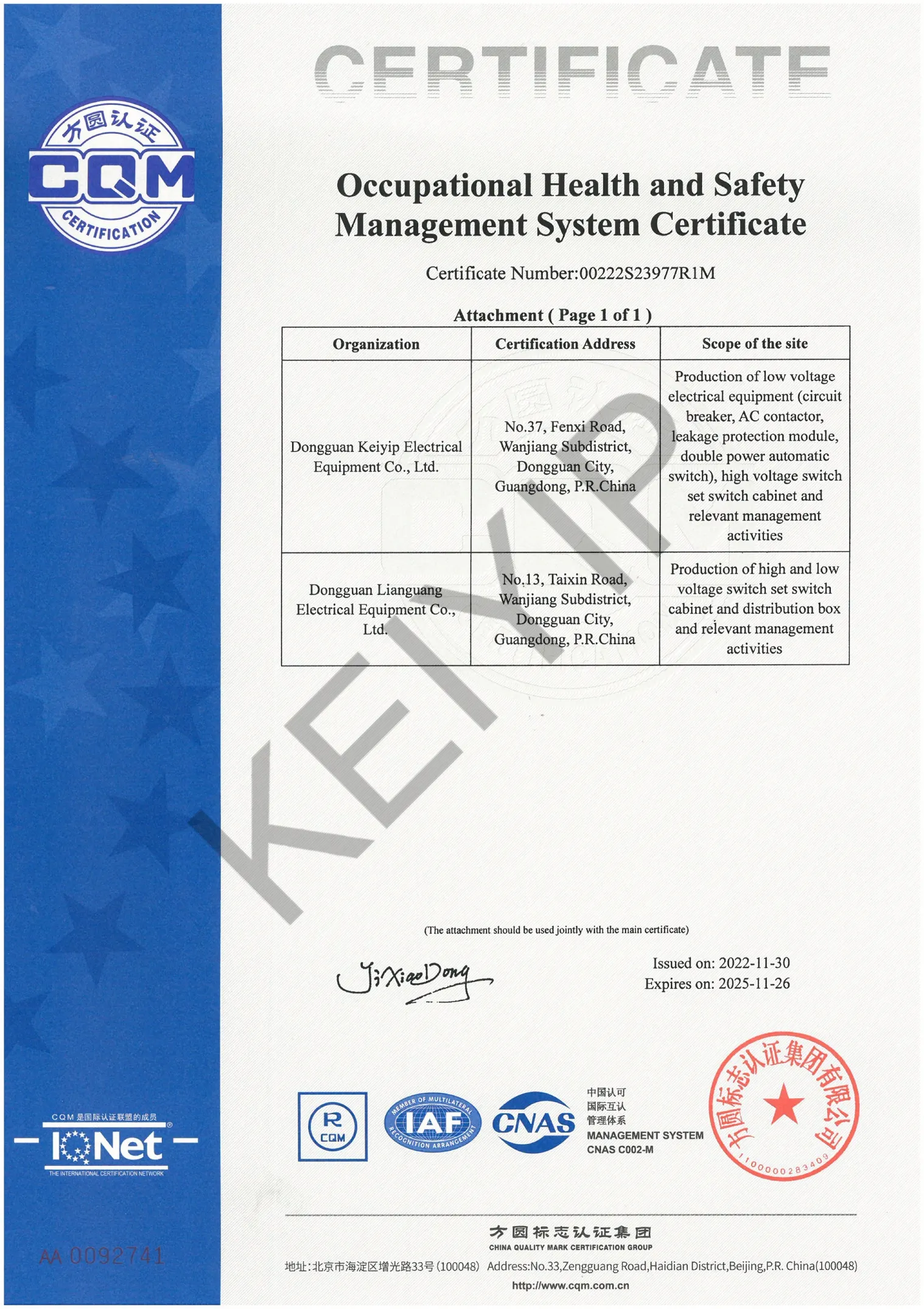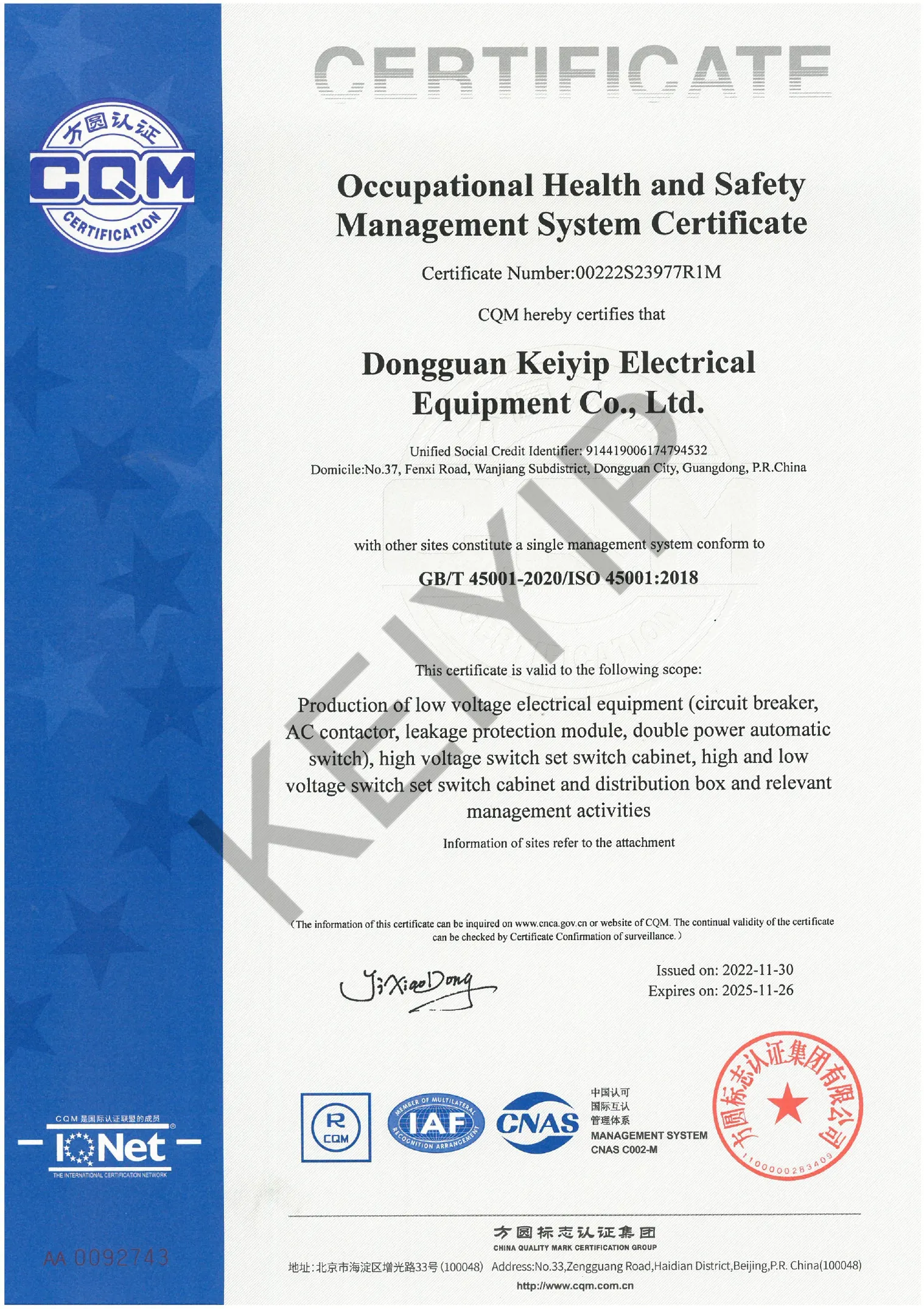 Quality Management System Certificate